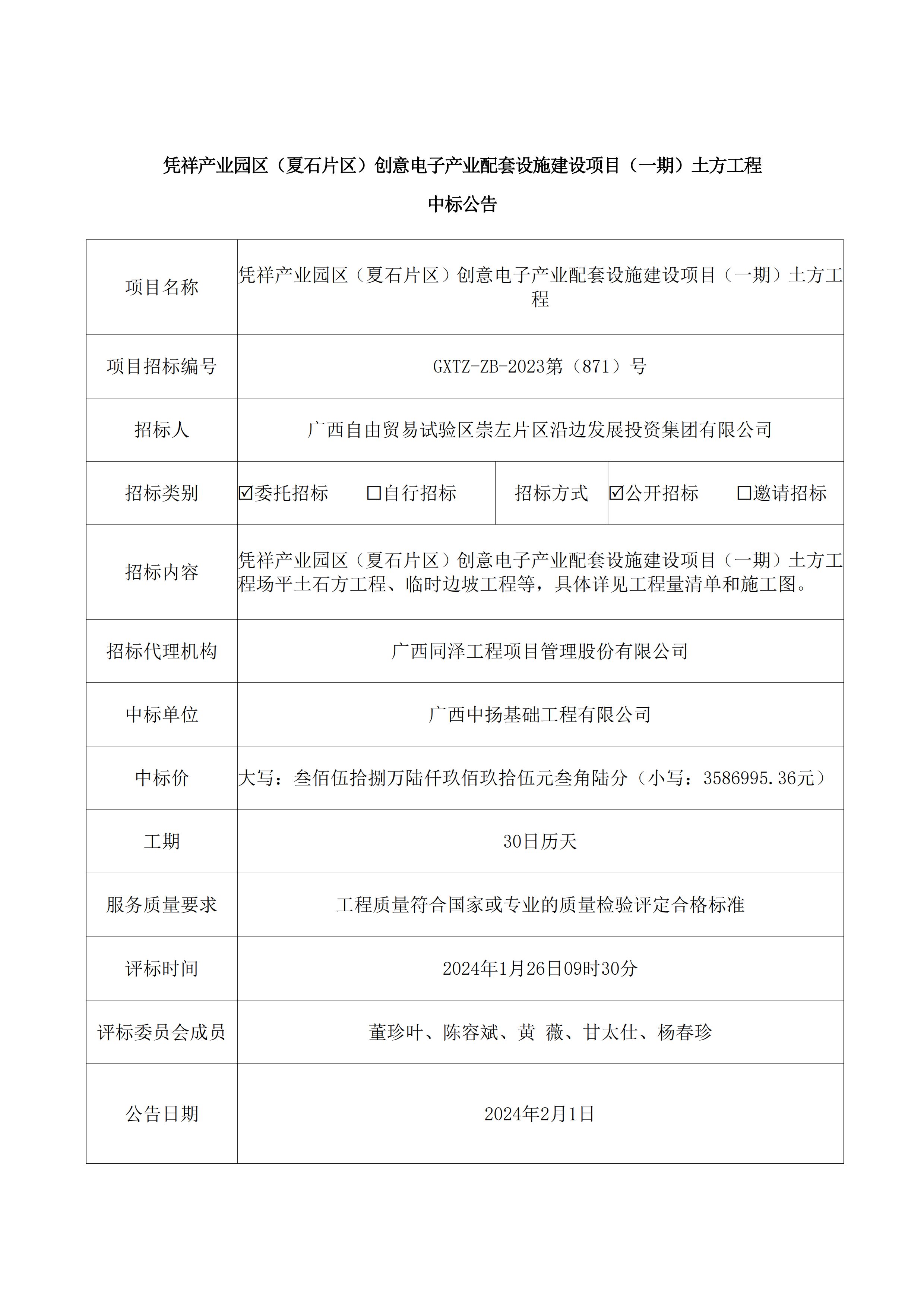 憑祥產(chǎn)業(yè)園區(qū)(夏石片區(qū))創(chuàng)意電子產(chǎn)業(yè)配套設(shè)施建設(shè)項(xiàng)目(一期)土方工程中標(biāo)公告
