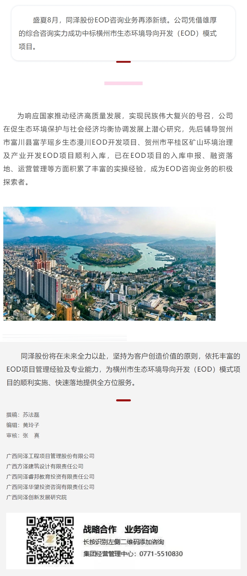 中標資訊 | 同澤股份成功中標橫州市生態(tài)環(huán)境導向開發(fā)(EOD)模式項目