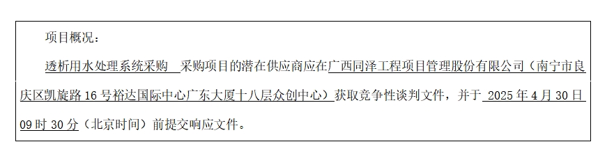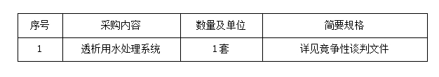 項(xiàng)目名稱:透析用水處理系統(tǒng)采購
